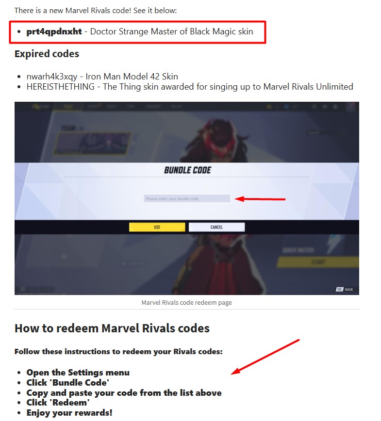 Which Marvel Rivals codes have been active since October 2025? In fact, there is only one active code –prt4qpdnxht. The expiry date is by the end of October 2025. Thanks to this free code (a new one drops every month), you will receive the Doctor Strange Master of Black Magic skin.